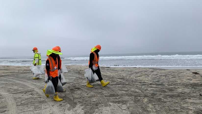 As volunteers-turned-citizen-scientists used the app to comb beaches to pin tar balls to the map, the US Coast Guard launched vessels with skimmers to gather as much oil as possible before it hit the beach. Biologists with the California Department of Fish and Wildlife deployed floating booms to keep oil out of wetlands and assess environmental damage. Responders from Orange and San Diego counties donned hazmat suits to gather the spilled oil and tend injured wildlife.