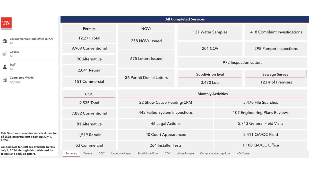 This year, TDEC was awarded honorable mention by the Environmental Council of the States (ECOS) in the State Innovation category for their septic permitting modernization project.