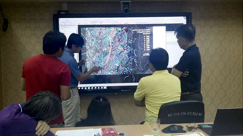 With this range of maps, responders modeled the terrain and determined where diversions could be built to reduce the flow of water into the cave. A collaborative team comprised of engineers from the Department of Royal Irrigation, experts from the Department of National Parks, Wildlife and Plant Conservation, and soldiers from the Royal Thai Army worked together to construct dams and install pipes that diverted water onto nearby rice paddies. Despite incessant rain, water levels within the cave started to drop.