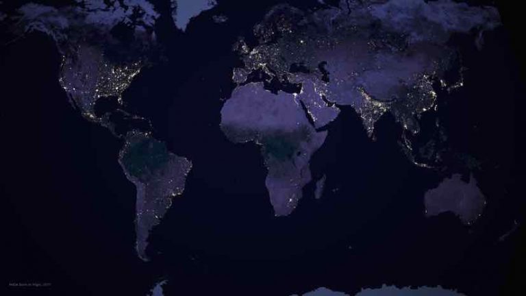 In April of 2017, I was pleasantly surprised to see an updated release of NASA’s Earth at Night imagery, the first since 2012. For several years I’d admired the dark surface of the earth punctuated with pinpoints and clusters of nighttime light visible from space, so I was delighted to see a new more current version.