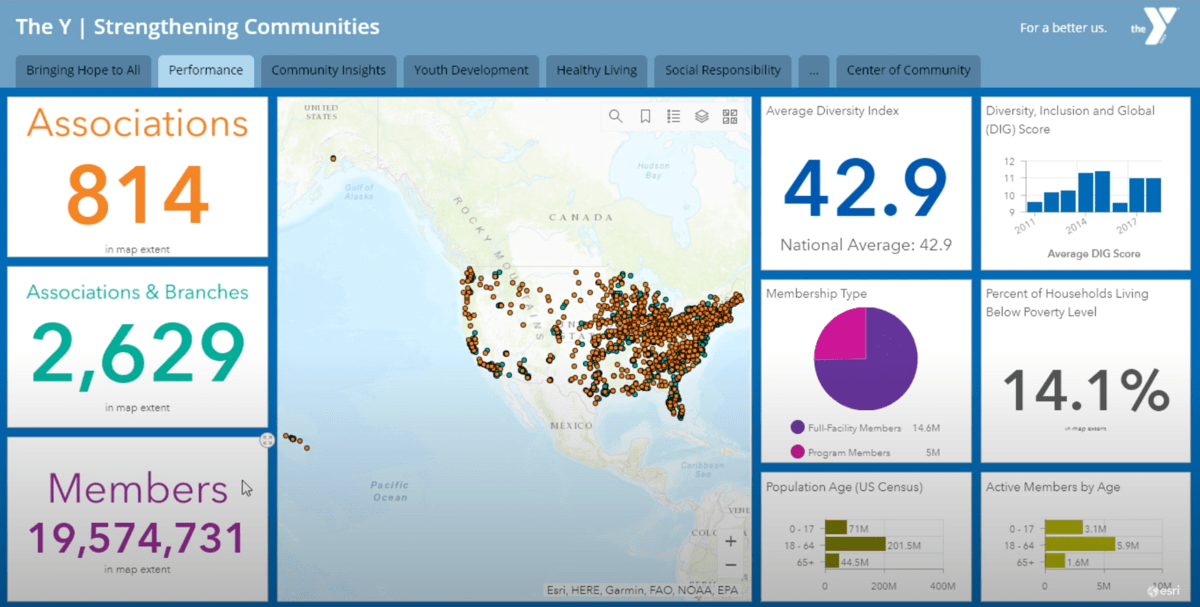 The Y adopted its data-driven approach around five years ago as a way to better understand how American society was changing, and how these changes should affect the Y’s operations on a national, regional, and local level. Part of the implementation challenge has been in helping local staffs feel comfortable using GIS tools.