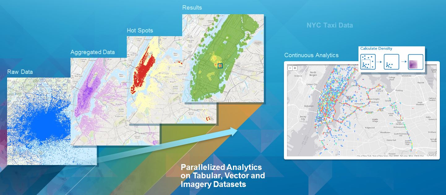 For the last couple of years, we’ve been working on a project at Esri called the Big Data Project. It’s all about GeoAnalytics and visualization of massive amounts of data. It’s about creating new insights from very, very large data—hundreds of millions or even billions of observations.