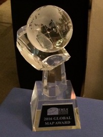 The IMIA Global Award recognizes the best products from all three IMIA regions: Europe/Africa/the Middle East, Asia Pacific, and the Americas. The three overall regional winners were judged against each other to decide which represented the best product for the current year. The overall winning entry from the IMIA Americas region, from Esri, was awarded the annual IMIA Global Award.