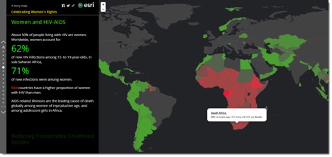 This story map, Celebrating Women’s Rights, is an example by Project Everyone about gender equality and its relationships to other key Sustainable Development Goals. Visit storymaps.esri.com/stories/2016/womens-rights/.