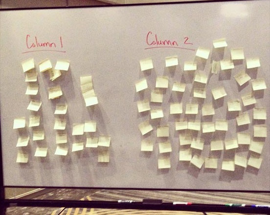 Two simple columns—”I would share this information” and “I would not share this information”—were created. One by one, attendees reorganized their actions on the whiteboard, located at the front of the room, showing everyone how they felt about sharing.