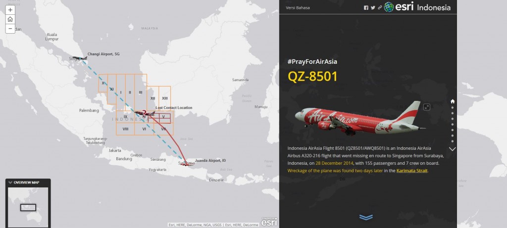 Across the South East Asia region, media outlets used an interactive story map to help readers understand all aspects of the AirAsia Flight 8501 crash and recovery process.