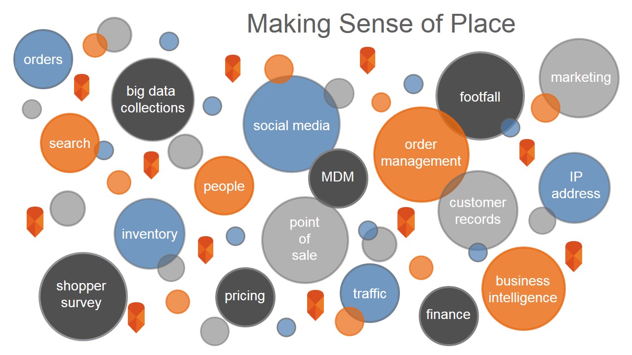 Every transaction, customer’s home address, IP connection for an Internet search, social media post, product delivery, and even lost sale and missed opportunity can be located somewhere. Imagine the possibilities when you go from simply mapping some of the sources of data depicted below to combining them and applying quantitative insight at the point of execution.