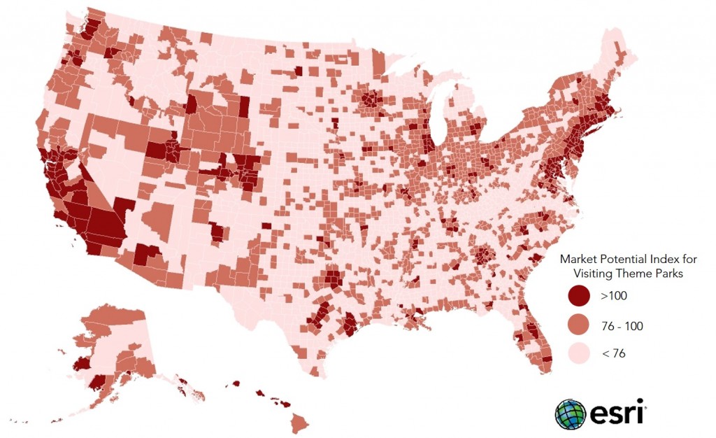 As someone interested in business development in commercial real estate or retail, how can you tap into this big market? How do you make informed decisions about targeting people who might be interested in visiting a theme park and the kind of promotions they might respond to? How can businesses located near a theme park take advantage of the proximity and offer off-premise services such as hotel rooms, food, shopping, or movies?