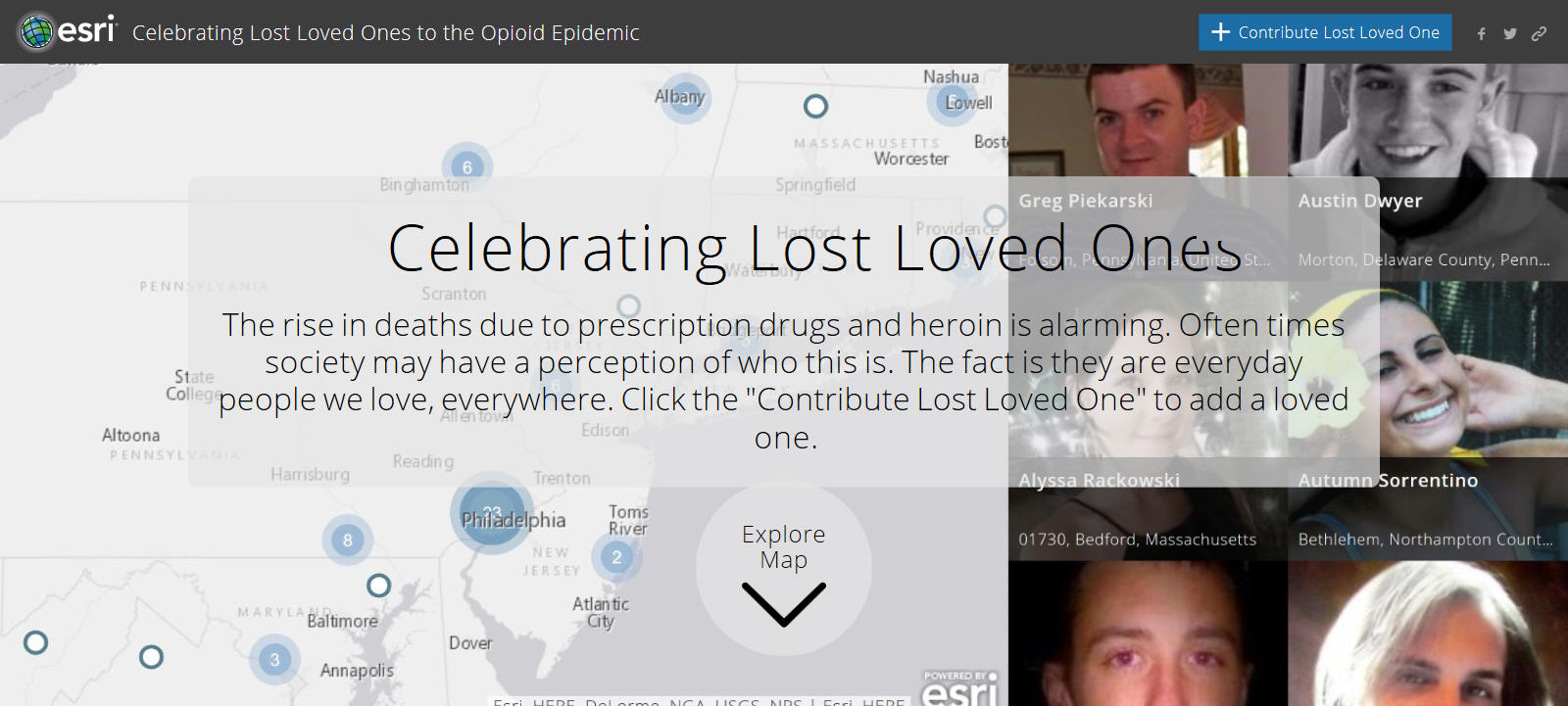 Each year over 17,000 deaths occur in the U.S from opioid painkillers. This map gallery is just one of many efforts to try and stop the epidemic and loss of great people.