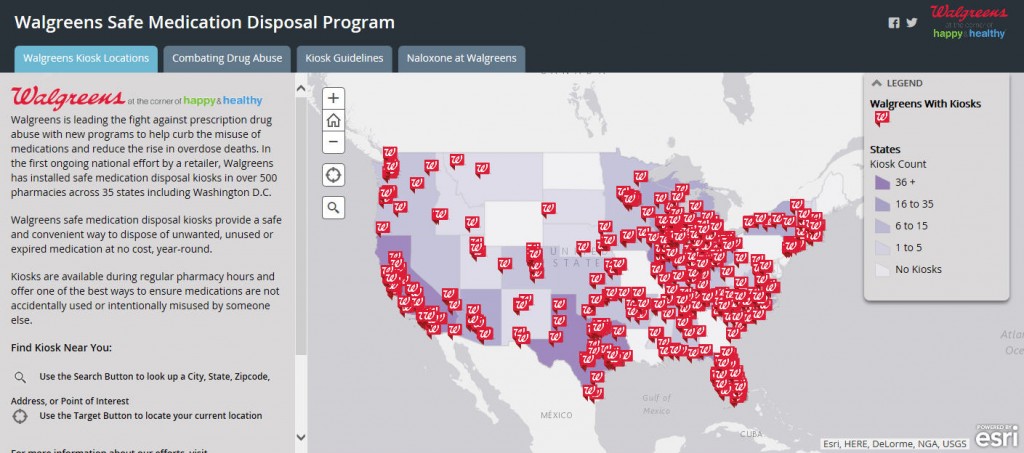 Join Walgreens in leading the fight against prescription drug addiction. Using ArcGIS, Walgreens is helping consumers safely dispose of their medications at disposal kiosks in over 500 pharmacies across 35 state including Washington, D.C.
