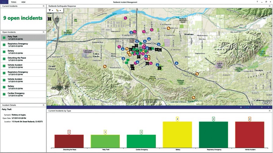 For this lesson, assume you are a GIS coordinator at an emergency response agency that is responsible for managing local emergency vehicles for the City of Redlands, California. You have at your disposal a lot of information and data sources to track. You need a way to bring all of this information together into a dashboard that will enable police and fire supervisors to know where all their assets are in relation to actual incidents happening on the streets.