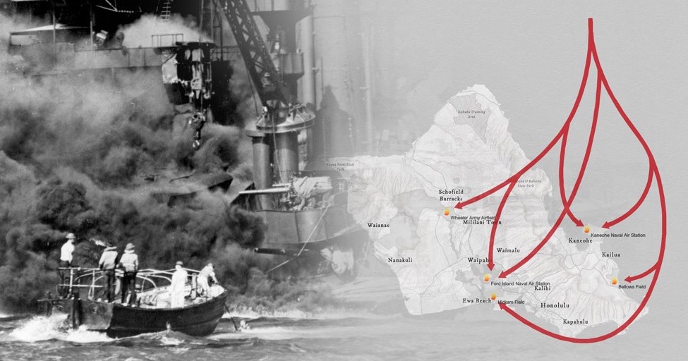 An Infamous Day Story Map takes the viewer through exactly what happened on December 7, 1941, when the Imperial Japanese Navy launched a surprise attack on the United States Pacific Fleet base in Pearl Harbor, Hawaii. This culmination of international tensions between the United States and Japan over trade rights in East Asia would ultimately draw our country into the most destructive war in history.