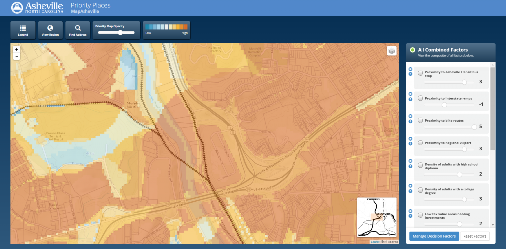Tools such as Asheville’s Priority Places put the power of spatial analysis in the hands of the community, improving the quality and focus of the dialog between all stakeholders.
