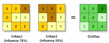 The result is a suitability value that is used for symbology in the output raster layer (OutRas).