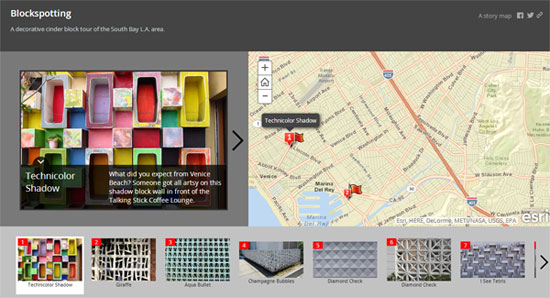Story Maps are fun, easy, and informative. Their popularity is documented by the many interesting examples you will find at the Story Maps Gallery. An enduring favorite of mine is not the most sophisticated, or provocative, or one that required GIS tradecraft to produce, but rather it’s one that’s elegant in its simplicity, in both implementation and subject matter. It’s one about, of all things, cinder blocks – the Blockspotting Map Tour.