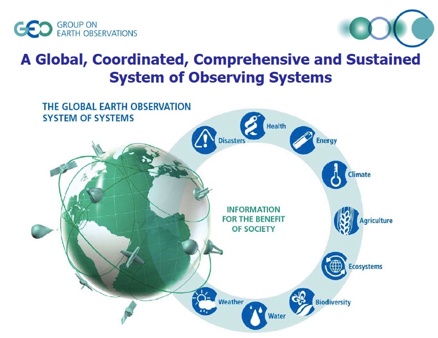 GEOSS seeks to address 9 societal benefit areas for Earth observations to address: disasters, health, energy, climate, agriculture, ecosystems, biodiversity, water, and weather. As governments and their partners continue to monitor the face of the Earth, the collection, storage, analysis, and sharing of these observations remain fragmented, incomplete, or redundant. Major observational gaps also remain (particularly as we seek to look beneath the surface of the land and the water). As such, GEO’s credo is that “decision makers need a global, coordinated, comprehensive, and sustained system of observing systems.”