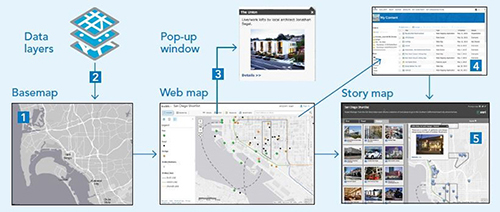 At their heart, web maps are simple. Start with a basemap and mash it up with your own data layers. Then add additional tools that support what you want your users to do with your web map: tell stories; perform analytical studies; collect data in the field; or monitor and manage your operations.