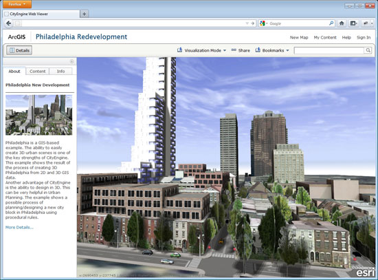 Another view into the future is provided with this prototype showing the integration of Esri CityEngine within the ArcGIS Online map viewer.
