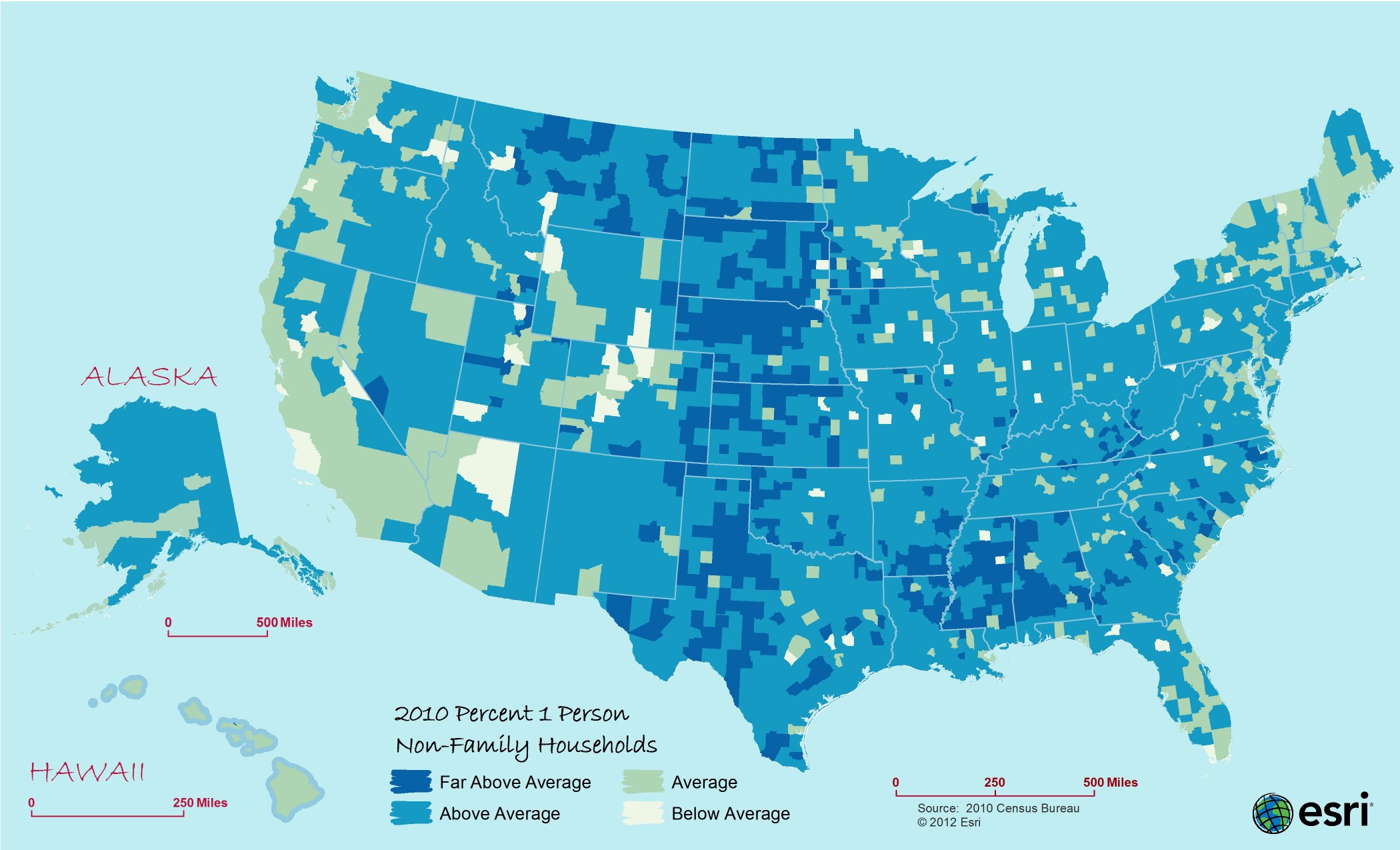 Average household size changed little from 2000 to 2010—2.59 to 2.58—with no obvious change in 2012.