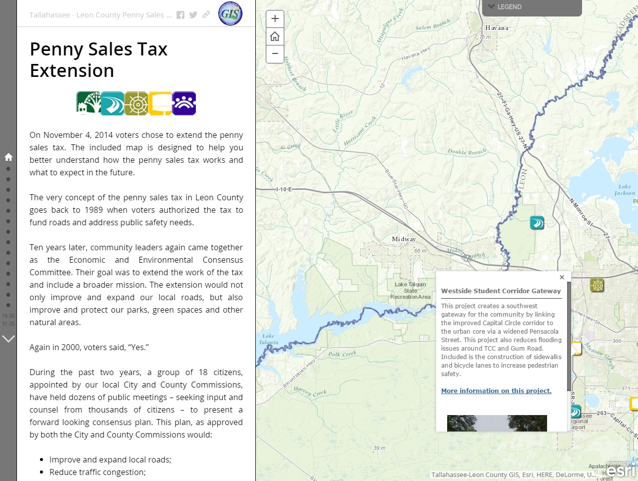 Sometimes just a simple map will do. If you want to look at property values or even the top ten taxpayers in your neighborhood, you can do that with some easy-to-use maps and apps. Now we can make story maps to highlight specific things such as property value changes by year or how a specific sales tax is being spent. We can make an endless variety of maps that answer some very specific questions. This adds to transparency, increasing public trust and confidence in government while reducing phone calls and citizen requests.