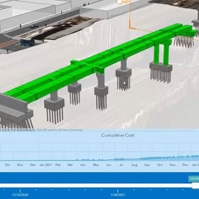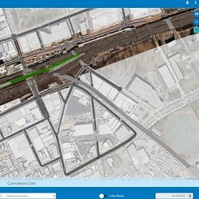 Alternately, an executive can hit Play on a three-month period of construction and watch a split screen that pairs an animation of a pier being built with a graph that charts the costs tied to that portion of the project.