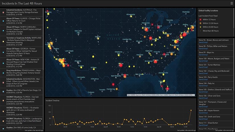 GM also partners with several companies to obtain data from news sources and providers of critical weather information. “We’ve been able to integrate data feeds directly into our GIS tool,” he says. “It has allowed us to get all relevant information in one spot and run reports quickly.”