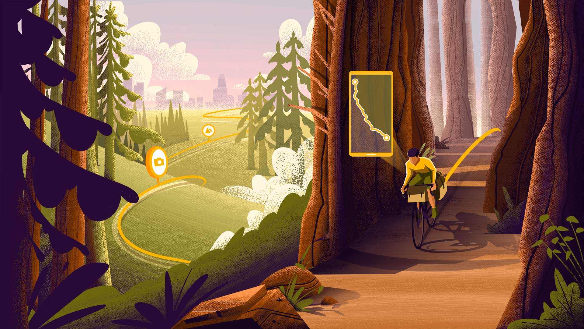 “Then, when you look down at your device or your app, you see something like 100 kilometers and 3,000 meters elevation gain. All these stories . . . were all compressed into numbers,” he says. “We realized, ‘Hey, something is missing.’”