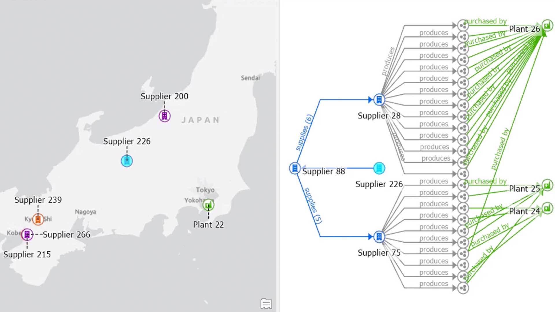 Automaker GM uses GIS to maintain agility in its supply chain, which includes multiple tiers of suppliers spread across the world. By using GIS maps to track global incidents like weather disturbances and factory fires, GM analysts spot problems in near real time and shift production schedules to keep vehicles moving through the manufacturing process.