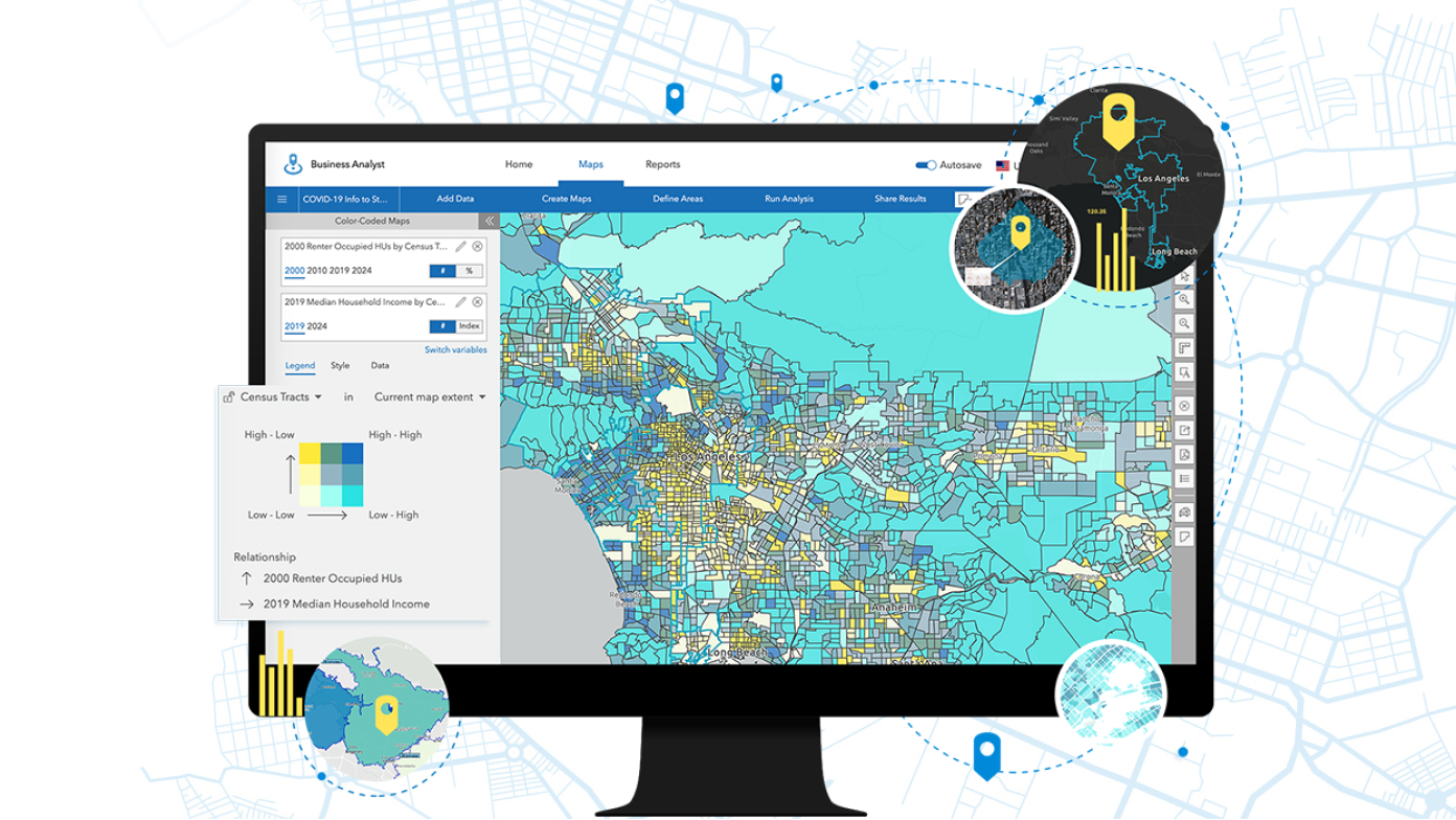 تستخدم الفرق الإبداعية ArcGIS لإنشاء قصص حملات مقنعة. أظهر للعملاء بالضبط أين توجد الفرص في سوق معين لعمليات شراء الوسائط المستهدفة والاستثمارات المركزة باستخدام ذكاء الموقع في قطاع البيع بالتجزئة. من خلال البيانات الديموغرافية الدقيقة، وبيانات الإنفاق الاستهلاكي، والبيانات السلوكية، يمكنك بثقة الوصول إلى أنواع معينة من العملاء في الأماكن التي يعيشون ويعملون ويلعبون بها.