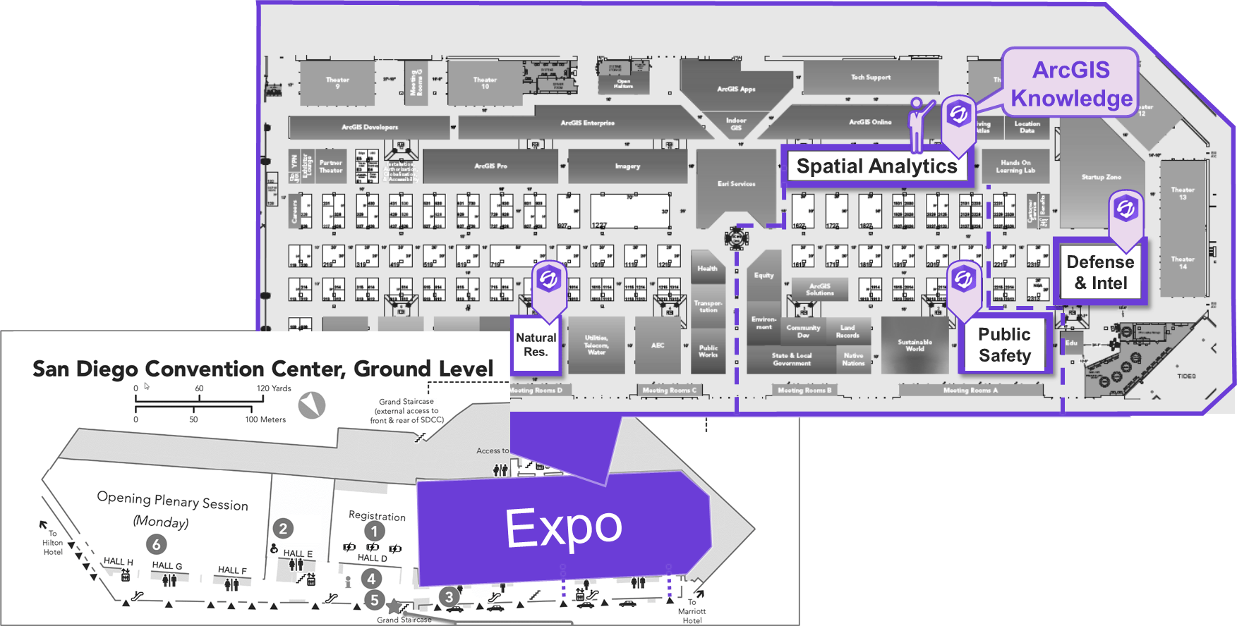 Also on the Expo floor, we also have Solution Engineer specialists at the Public Safety, Defense and Intelligence, and Natural Resources industry booths with industry specific demos.