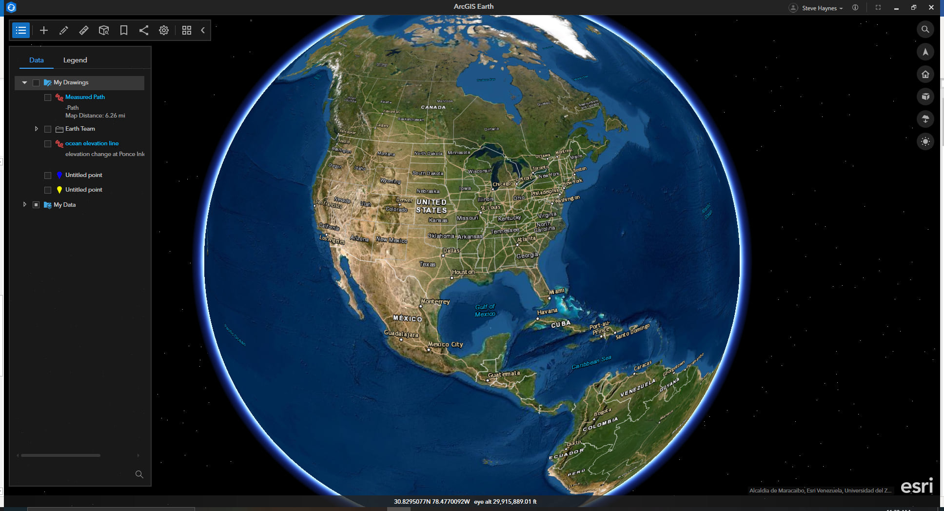 2. When zoomed in below 200,000ft eye alt and your mouse is run over the globe surface, X, Y, Z coordinates, and Eye altitude are shown on the explore bar as shown below: