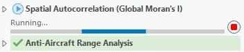 As ferramentas de geoprocessamento no ArcGIS Pro são executadas em um segmento dedicado para o geoprocessamento. Isso significa que quando uma ferramenta está em execução, é possível realizar outras operações no aplicativo como adicionar novos dados a um mapa, navegar e fazer seleções, alterar a simbologia ou os rótulos de uma camada, criar e modificar um layout e até mesmo encontrar e preencher os dados de uma ferramenta de geoprocessamento. Se você executar uma ferramenta de geoprocessamento enquanto outra ferramenta estiver em execução, a mesma será adicionada a uma fila para execução após a finalização da primeira.