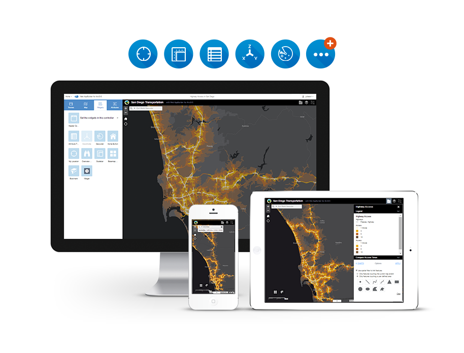 Outra novidade na versão 10.3 é a disponibilização do Web AppBuilder for ArcGIS*, que permite que os usuários que não são desenvolvedores construam aplicativos e também fornece aos desenvolvedores oportunidades para construir os seus próprios widgets que podem ser utilizados com o Web AppBuilder.