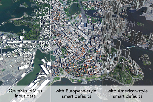 We’ve added procedural rules for OpenStreetMap (OSM) buildings. The CGA rule is automatically assigned when you launch ‘Get map data’. It also auto-interprets attributes on import to provide these rules with the information they need to generate your 3D buildings. If the OSM data for the area of interest does not include attributes, the rules apply smart defaults based on city style.