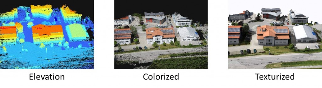 Drone2Map produces point clouds in a variety of formats. One of the most widely used point cloud formats produced by Drone2Map is LAS. These LAS point clouds are georeferenced and colorized to provide both analytical and visualization capabilities. By default your LAS point cloud will be rendered by elevation in ArcGIS Desktop. Using the out of the box tools, you can quickly analyze and extract features from the point cloud. In addition to point clouds, Drone2Map also produces photo realistic textured meshes. These textured meshes provide a real world visualization experience that can be used for site planning, modeling, and much more.