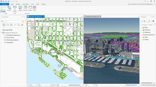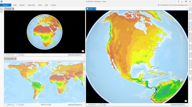 ArcGIS Pro es una aplicación de escritorio verdaderamente de 64 bits que toma ventaja de tu moderno hardware para un máximo desempeño y despliegues suaves de mapas y escenas 3D. Tiene una interfaz vibrante y contextual que te sirve con las herramientas precisas en el momento preciso, y todo el que ha empleado tiempo buscando herramientas sabe que esto es fantástico. Ahora puedes hacer nuevas y emocionantes cosas como diseñar y editar en 2D y 3D en un solo lugar, trabajar con múltiples despliegues y diseños de mostrado, y publicar mapas web terminados directamente en ArcGIS Online o Portal for ArcGIS.
