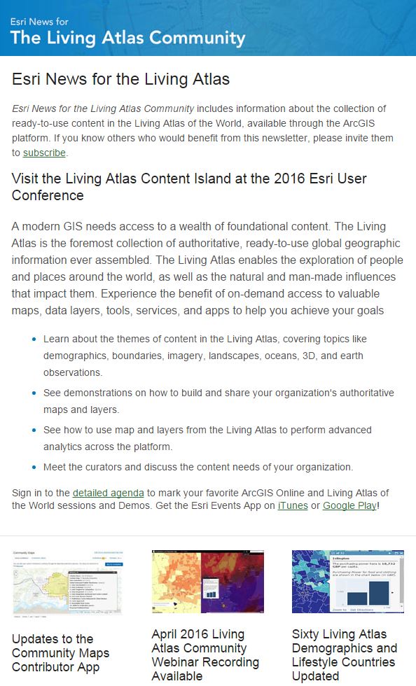 Visit the Living Atlas Content Area at the 2016 Esri User Conference!