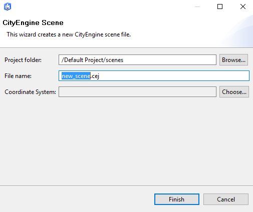 Next, pick a name for your scene. The scene will be saved to your default CityEngine project.