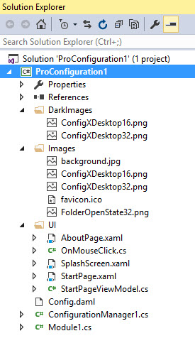 - A default config.daml file is included just as in a standard Pro add-in project, it determines how Pro controls will appear in the Pro UI