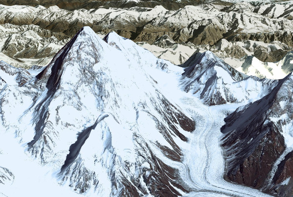 K2, Pakistan (8,611 meters/28,251 feet). K2 viewed in 3D provides a compelling glimpse at the world’s second highest peak in a way an ortho image is unable to achieve.