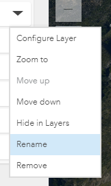 I kept my names for the scene layers pretty geeky and only I really know what the titles mean here. I can update the name of my layers in Scene Viewer by clicking Rename on the menu that opens by clicking on triangle on the layer. I can do this for my scene layers and elevation layers. If I see any of the layers out of order I can also use this menu or drag and drop to reorder them.