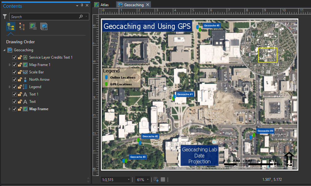 – Layouts have their own table of contents – North Arrow, legend, etc. are all objects in the table of contents.