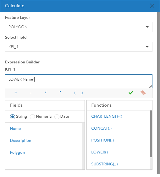 You can now use a Calculate tool to update attributes of multiple features. You can do this against all or selected features in a scenario or all features across all scenarios. You can build expressions from functions, attributes, and use mathematic and grouping operators. Calculate will help you maintain data integrity and generate values for Key Performance Indicators (KPIs).