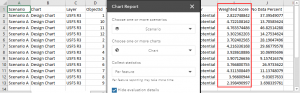 But wait, there’s more! Earlier in 2017, we introduced a chart report that generates a .csv for planning elements, environmental screening reports, and other information products. You can now streamline this report by hiding its evaluation details. This will show a suitability score per type or feature and allow you to answer the question What are the suitability scores for my features?