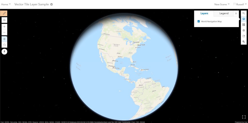 A vector tile layer references a set of web-accessible vector tiles and the corresponding style for how those tiles should be drawn. Vector tiles are similar to image tiles, but they store a vector representation of the data. The combination of tile access performance and vector drawing allows the tiles to adapt to any resolution of the display, which may vary across devices. You can use the vector tile layer as an operational layer or as a basemap. It also works with the elevation layer in the web scene. You can update a style file that can change the appearance of the vector tile layer to suit your requirements or you can use ArcGIS Pro to create a vector tile package and publish your own vector tiles to ArcGIS Online and leverage them in Scene Viewer. Check out this web scene with an esri vector tile layer as an operational layer.
