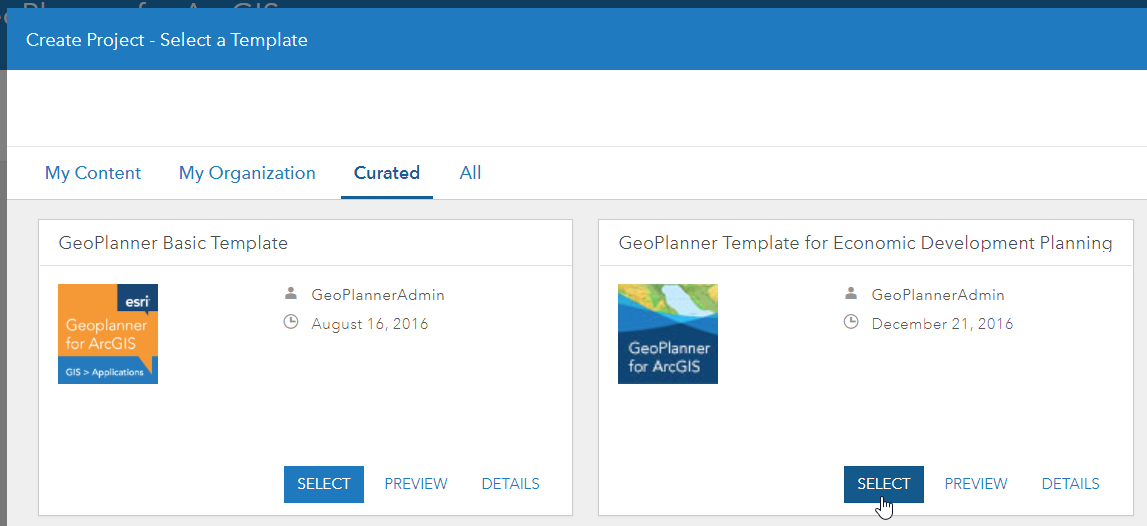 Now, sign into GeoPlanner and create a new project using the template for Economic Development Planning.
