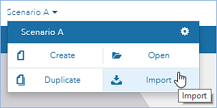 You can access the Import Scenario tool by clicking the scenario dropdown in the upper-left corner of the application, and choosing Import.