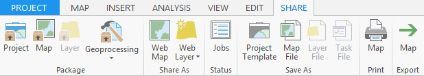 With ArcGIS Pro 1.3, you can share web tile layers and web elevation layers with vector tile packages and scene layer packages. Of course, you can also share your maps, scenes, geoprocessing tools and workflows, and entire projects within your organization or with everyone on ArcGIS Online.