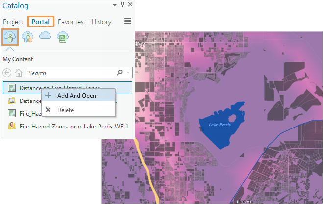 He right-clicked the Distance_to_Fire_Hazard_Zones map and clicked Add and Open.