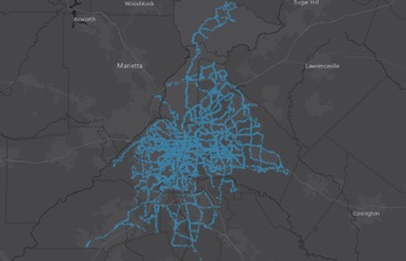 Quarter-mile service area around MARTA stops created in ArcGIS